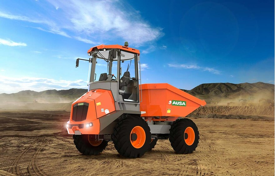This year, the main launch of the manufacturer of all-terrain compact industrial vehicles is an innovative 10-ton (22,000 lbs) dumper featuring reversible driving, hydrostatic transmission and a closed cab: the DR1001AHG. With this new dumper, AUSA is positioning itself as the segment leader in the area of safety. In addition to the rotation of the driver's cab, the dumper is equipped with a front camera, a fully closed ROPS/FOPS cab with heating, a seat belt buckle sensor, an audible reversing alarm, two rear-view mirrors and a safety grille.
