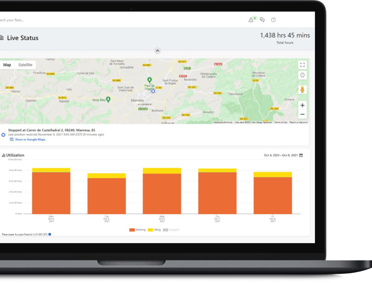 Activeer de door AUSA aanbevolen onderhoudswaarschuwingen en houd uw machine in een perfecte staat van onderhoud. En voor uw veiligheid kunt u geofences (virtuele grenzen) vastleggen en alarmen ontvangen als de machines de vastgelegde grenzen overschrijden.